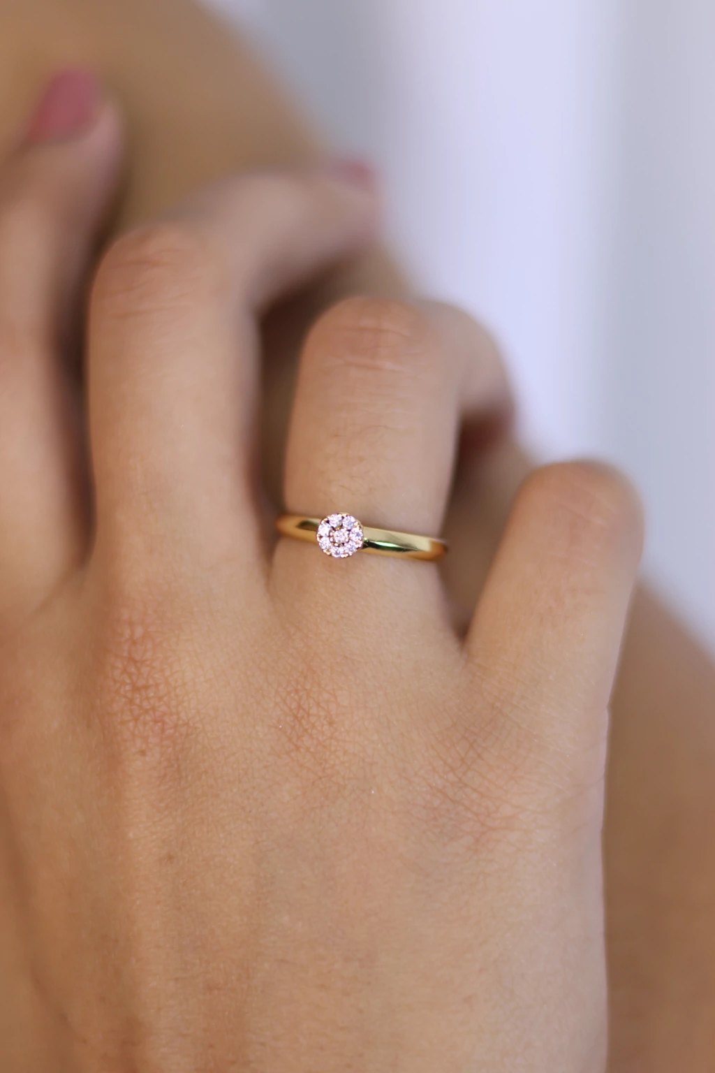 Realce seu estilo com a delicadeza e o brilho do Anel Liso com Solitário Cravejado – sua nova semijoia favorita!