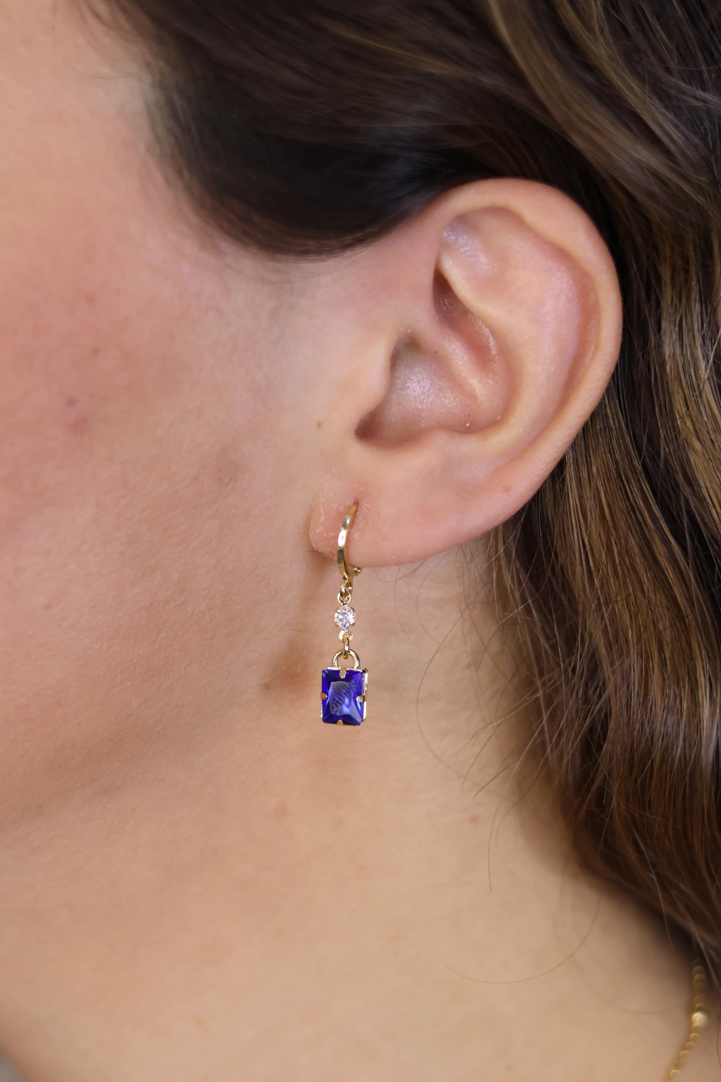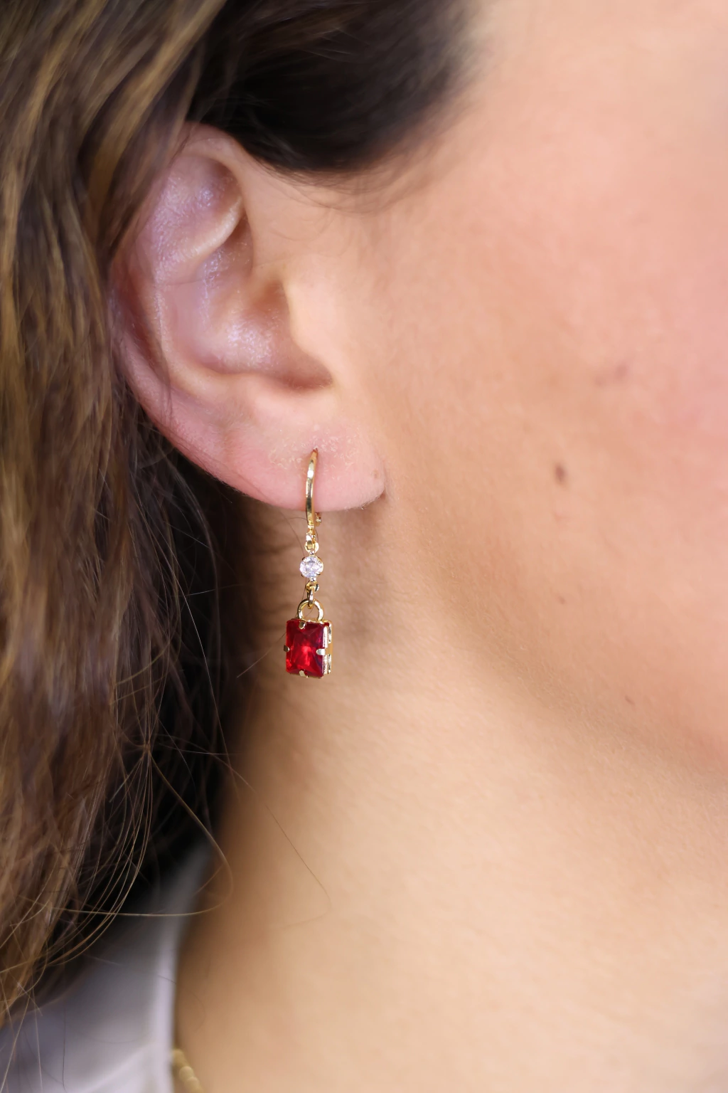 Argola Click com Ponto de Luz e Cristal Retangular Vermelho e Azul – Semijoia Banhada a Ouro 18K