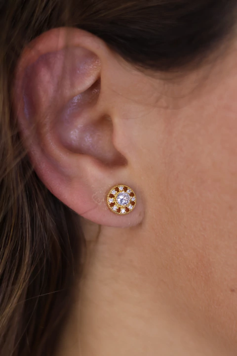 Elegante e radiante, este brinco redondo é uma joia clássica reinventada com o brilho intenso das zircônias cristal. Cada detalhe foi cuidadosamente elaborado para refletir sofisticação e bom gosto, resultando em uma peça versátil que ilumina o rosto e valoriza qualquer produção.