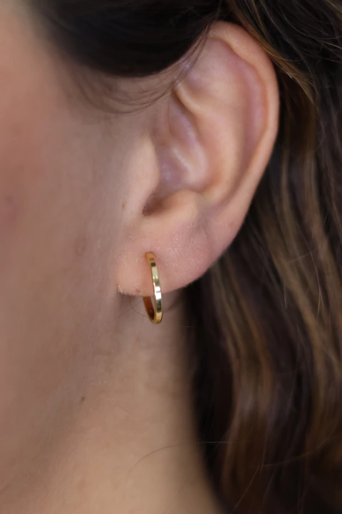 A Meia Argola P Lisa é o acessório perfeito para quem busca elegância minimalista e sofisticação em cada detalhe. Com design clássico e superfície totalmente lisa e polida, esta peça reflete o brilho intenso do ouro 18K, trazendo um toque refinado e moderno ao visual.