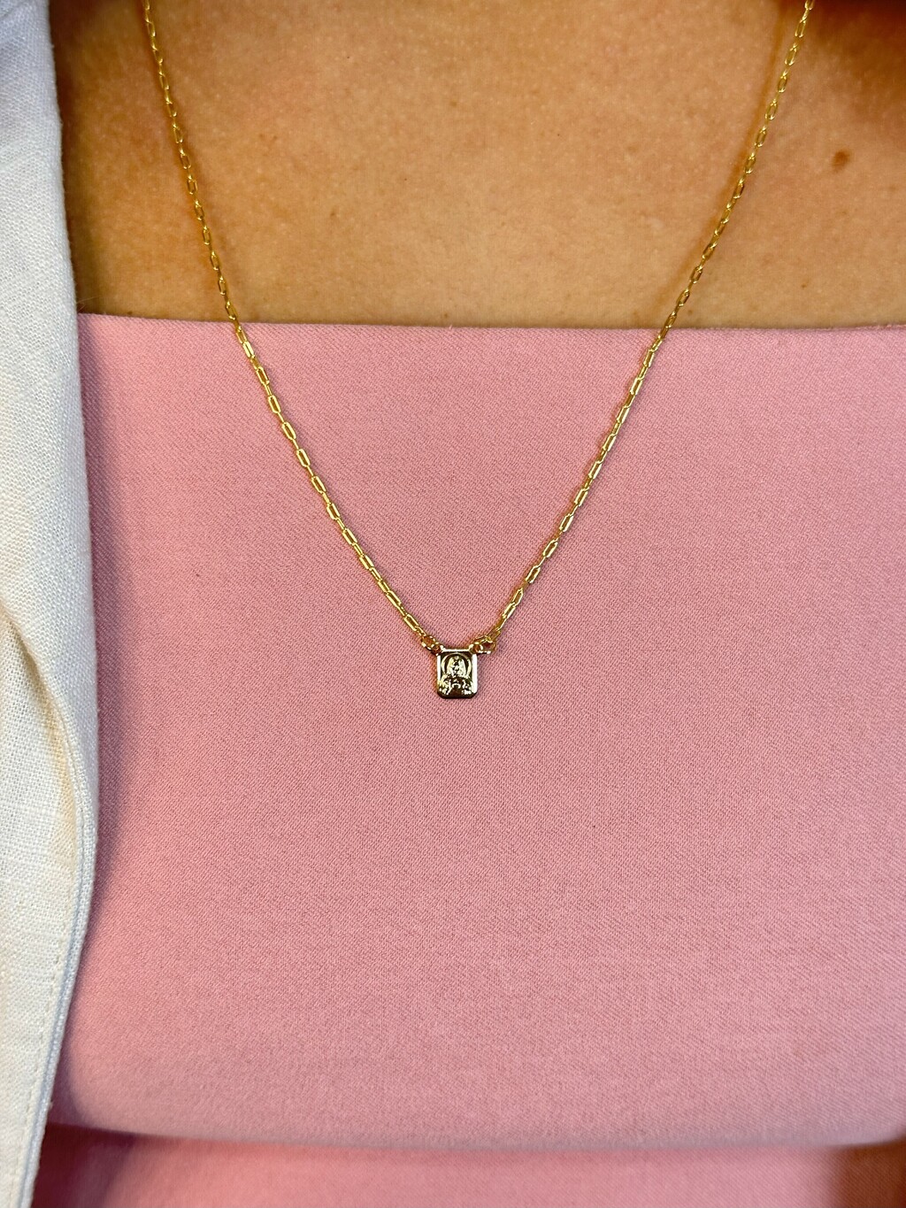 Escapulário Mini Banhado a Ouro 18K – Uma expressão delicada da sua fé!